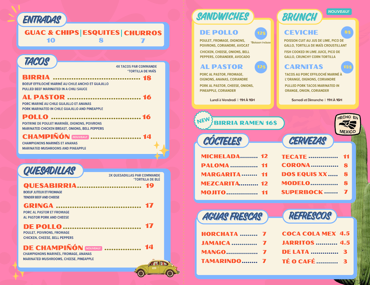 Don't miss out on their Guacamole & Chips, a beautiful combination of fresh ingredients that pairs perfectly with their refreshing Aguas Frescas. Pick your favorite flavor, be it Horchata or Jamaica, each offering a delightful balance of sweetness and a hint of spice. For something a bit different, try the Ramen Birria—a unique twist that has surprised and delighted visitors, as noted by satisfied diners like 'Alexandra Haddad'.