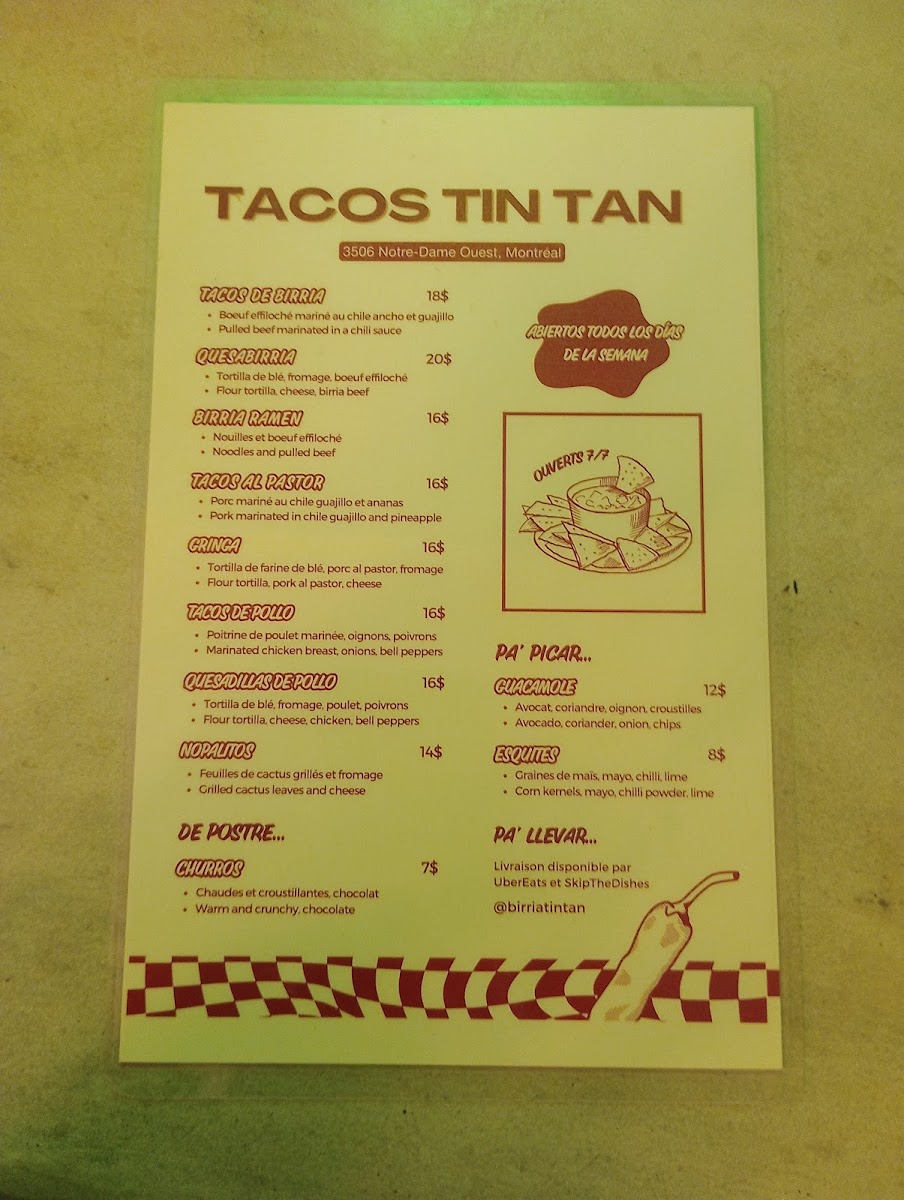 If you're seeking an authentic taste of Mexico in the heart of Montreal, look no further than Tacos Tin Tan in St. Henri. This charming Mexican restaurant is a hidden gem, perfect for taco enthusiasts and newcomers alike. Nestled at 3506 Notre-Dame St W, this eatery offers a vibrant and cozy ambiance, with a compact dining space and a delightful terrasse that shines during the warmer months.
